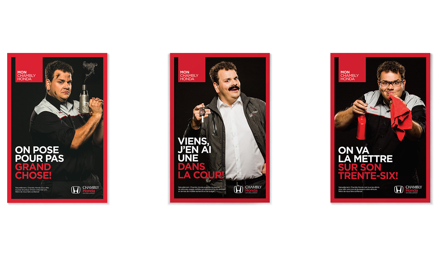 Notre alliance avec Chambly Honda consistait en l’actualisation du logo et la création d’une nouvelle signature d’entreprise. L'agence a réalisé l'élaboration de stratégies médias et la conception de plusieurs campagnes publicitaires. Une relation long terme a permis à l'agence de concevoir des outils marketing variés, dont la création du lancement de la première plateforme d'achat de véhicules neufs en ligne avec son porte-parole Philippe Laprise.